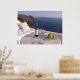 C'est une table à Santorin sur notre balcon privé donnant sur la caldera. Ils nous ont apporté du vin et une assiette de fruits.
