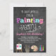 Notre invitation originale, best-seller, Painting Art Party Chalkboard style anniversaire de fête est l'invitation parfait pour toute soirée à thème art et peinture. Notre design comprend un arrière - plan de tableau noir, un mélange de lettres motifs amusantes comme des pois, des rayures et des chevrons, ainsi que des illustrations et des graphiques d'art comme un chevalet d'artiste, une palette de peinture et des pinceaux.