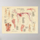 Un tableau anatomique montre le système vasculaire. Vue latérale montrant les vaisseaux sanguins et le coeur. Les reins avec artères et veines. L'affiche est étiquetée avec des descriptions.
