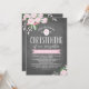 Invitation de Christening personnalisable avec des fleurs d'aquarelle sur un arrière - plan de tableau noir.