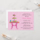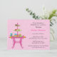 Une invitation élégante pour un déjeuner nuptiale de douche ou de demoiselle d'honneur avec la table rose de dessert, le plateau à gradins avec des petits gâteaux, les pâtisseries et les gâteaux sur l'arrière - plan rose avec le motif de tourbillonnement subtil de feuille.