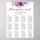 Tableau de disposition de sièges floral aquarelle lilas et violet
