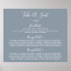 Ce tableau minimaliste de banquet bleu feuille et blanc mariage est parfait pour un mariage élégant. Le design se compose d'une simple silhouette de verdure blanche sur un arrière - plan bleu poussiéreux au style minimaliste classique.