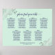 Cette belle carte de sièges mariages comprend 7 tables ou 70 places avec 10 places par table. Le design chic et sophistiqué est simple mais élégant avec du texte bleu marine sur un arrière - plan vert clair ou de couleur néo-menthe. Le titre dit : "s'il vous plaît trouvez votre table" dans une calligraphie en dentelle et les coins sont décorés avec des contours en faux feuille gris argenté dans un motif floral délicat. Une belle façon d'aider vos clients à trouver leurs tables à la réception tout en ajoutant une touche de style.