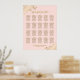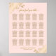 Ce tableau de sièges mariage propose des assignations de table pour 200 personnes, avec 10 personnes à chaque table. Le design est simple mais élégant avec du texte doré sur un arrière - plan rose clair. Il y a des boucles et des tourbillons en faux feuille d'or frileux dans les coins et des calligraphies de script élégantes qui lisent "s'il vous plaît trouver votre table."