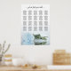 Cet élégant tableau de 20 places mariage dispose d'un beau rose bleu clair et poussiéreux réfléchissant dans l'eau avec des vagues et des ondulations. Le titre dit "s'il vous plaît trouvez votre table" dans la calligraphie de script dentée. Il y a de la place pour les noms du couple et la date du mariage. Ce graphique a des affectations de table pour 200 invités - 10 personnes par table.