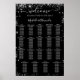 Un arrière - plan noir classique. Décoré avec de la parties scintillant en faux argent. Personnalisez et ajoutez le nom de la mariée et du marié, ajoutez vos noms d'invités. 19 tables de 10 convives chacune