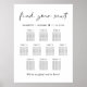 Carte de sièges mariage téléchargeable moderne inscrivez-vous pour jusqu'à 10 tables avec "trouver votre siège" dans un script chic, vos noms et date mariage unis par un coeur et "Nous sommes si heureux que vous êtes ici" dans la typographie serif classique. Vous pouvez sélectionner l'option de téléchargement numérique à modifier avec des modifications de dernière minute et imprimer localement.