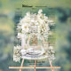 Ce tableau de sièges mariage, magnifique sur une table lorsque vos invités entrent pour trouver leurs tables. Motif de Roses blanches, bougies et paramètres de table dans l'arrière - plan, le tout avec du texte noir visible.