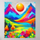 Un paysage serein et rêveur avec une chaîne de montagnes colorée et un ciel vibrant. Cette oeuvre évoque un sentiment de paix et de tranquillité, invitant les spectateurs à s'évader dans un monde d'imagination (Cette conception faite avec IA). Commandez dès aujourd'hui et offrez-vous la joie du shopping !