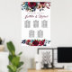 Tableau Mariage à 5 tables, Flore rouge foncé