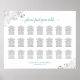 Cette belle carte de sièges aidera vos invités à trouver leurs tables assignées à votre réception de mariage. Il présente un design simple mais élégant avec du gris foncé et du texte turquoise ou turquoise sur un arrière - plan blanc. Le titre est écrit en calligraphie script lettering et dit : s'il vous plaît trouver votre table. Le graphique est décoré d'une frileuse florale fausse feuille argent filigree dans les coins. Contient des sièges pour 21 tables à 10 personnes par table ou 210 personnes.