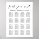 Poster simple et moderne pour mariage, jusqu'à 16 tables avec "trouver son siège" dans un script chic et vos noms et date de mariage réunis par un coeur. Sélectionnez l'option de téléchargement numérique à modifier avec des modifications dernières minutes et imprimer localement.