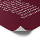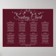 Ce tableau de 8 places vous permettra de trouver facilement votre place à la réception de votre mariage. Il présente un design sobre et élégant de texte gris avec un arrière - plan bordeaux et une bordure argentée vintage en fibre florale. A des places assises pour 80 personnes.