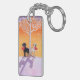 Travailleurs d'hiver personnalisés Peinture Porte - clé pour les fans du Labrador! Labrador Retriever doux et touchant dans la neige blanche. Innocent Black Labrador et Yellow Labrador se tiennent derrière l'arbre d'hiver avec un coeur rouge chacun. Beau coucher de soleil en hiver. Beaucoup de coeurs dans l'image. Peint par Naomi Ochiai du Japon.
