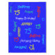 What a wonderful, personalized tablecloth for a 75th birthday party or any other occasion. Name and Age repeat in different fonts and primary colours on a bright blue background. Easy to personalize - just CHANGE NAME, AGE, and OCCASION in ONE PLACE. Supports name up to 9 characters. A colourful and fun Birthday Party table cover for any name, any age. Matching paper plates and paper napkins are available on zazzle at SocolikCardShop. All Rights Reserved © 2014 Alan & Marcia Socolik.