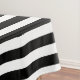 This lovely tablecloth is shown with a modern black and white stripes print design.