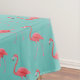 Cotton tablecloth shown in a solid colour of aqua blue with a cute tropical pink flamingo print.