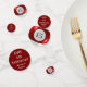 In the 19th century a poolroom was a horse race betting parlour. Pool tables were installed so the bettors could pass time between horse races. Billards, or pool, is the descendant of a game similar to croquet that was played in 15th-century Europe. Though we don't know for sure, it is strongly suspected that billiards came to America with Dutch and English settlers. By the 1700's, skilled cabinet makers were crafting beautiful tables, though the equipment was, otherwise, quite primitive. Fifteen-ball pool came on the scene in the late 1800's and grew in popularity through the 1940's. Billiards was revived in 1961 with the release of the movie THE HUSTLER. It enjoyed another surge in the mid 1980's with the release of the movie sequel, COLOR OF MONEY. Since that time, there has been an evolution of the environs in which we find pool tables -- they're in restaurants and night clubs and sports bars, allowing pool to find a modern audience and new generations of enthusiasts. This marvellous design features the bold, burgundy-striped FIFTEEN ball . . . making this tablefetti an excellent choice for 15th birthdays, anniversaries . . . or any other notable fifteenth. The reverse is a coordinating solid burgundy featuring text you may personalize to your special "fifteenth" event.
