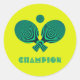 This beautiful custom and personalizable tabletennis sticker features an impressive yellow teal ping pong champion design in retrostyle. Perfect gift for tabletennis pros, ping pong lovers and pongistas.