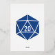 Bring touch of geeky fun to your event with this wedding invitation featuring a rich sapphire blue border on the right side, decorated with a pattern of twenty sided dice printed in real foil. The left side of the card has plenty of space for all of the details for your tabletop gaming-themed event with some sample text in place that can be customized to fit your needs. A large, sapphire d20 finishes things off on the back to create a cute final note. This invitation will match with any other Tabletop Chic in Blue product so that you can easily make your event as coordinated as you desire.