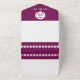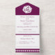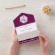 Bring touch of geeky fun to your event with this all-in-one wedding invitation and RSVP card. On the inside you will find a white twenty-sided die on a rich wine background above a section with some sample text that can be customized for your special day. The lower section of the invite features a removable, postcard sized piece that has some sample RSVP text sitting above a wine border with pattern of d20s scattered across the bottom. Outside, a similar border of twenty-sided dice on wine can be found below the areas where you would add stamps, standard, and return addresses for both the invitation as a whole and the returnable RSVP section. The flap used to fold over and seal the card has a single d20 on a rich wine background with a sample set of initials that you can customize for a final personal touch that shows off your love for tabletop gaming and each other. Be sure to check out the rest of the Tabletop Chic in Wine set for other coordinating products, including return address labels.