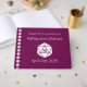 Create a fun custom way for the guests of your geeky wedding or event to leave their names and messages for the happy couple. A deep wine background is decorated with a white twenty-sided die on both the front and the back. Alongside the spine, a pattern of d20s creates a cute accent. The front has a sample message, names, and date that can be customized to make this book unique for the event.