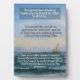 Tabletop Plaque with Easel this image is a poster with a peaceful ocean scene in the background. The text on the poster is in white and brown, featuring a quote about questioning and trusting God. It emphasizes that it is natural for humans to question God's mysteries, but true spiritual growth comes from trusting in His guidance. The poster uses the analogy of a sailor navigating the ocean without knowing everything about it to illustrate the concept of trusting in God's guidance.