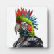 Funny Punk Rocker Parrot with mohican hairstyle wearing a leather jacket.