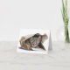 Aquarelle d'un chat tabby gris mignon dans un sac en papier marron pour carte à billets vierges.