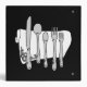 A set of simple silverware on an embellished table napkin in black, white and grey. Click Customize It to change fonts, background colours and more.