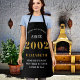 Un tablier noir classique personnalisé pour cette fête d'anniversaire. Ajoutez le nom à ce design vintage de style rétro noir, blanc et or pour un cadeau d'anniversaire personnalisé. Modifiez facilement le nom et l'année avec le modèle fourni. Un merveilleux cadeau d'anniversaire personnalisé. Plus de cadeaux et de fournitures de fête pour cette fête dans le magasin.