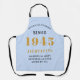 Un tablier bleu classique personnalisé pour cette célébration d'anniversaire pour quelqu'un né en 1945 et ayant 80 ans. Ajoutez le nom à ce design de style rétro vintage pour un cadeau personnalisé de 80 ans. Modifiez facilement le nom et l'année avec le modèle fourni. Un merveilleux cadeau d'anniversaire personnalisé. Plus de cadeaux et de fournitures de fête pour cette 80ème fête dans le magasin.