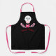 Tablier noir mignon et éffrayant avec un cupcake caricaturé rose et blanc mignon avec x x yeux et langue sortant