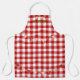 Un tablier de chef classique rouge et blanc en vichy avec texte et graphisme.