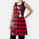Ce tablier a un design moderne du milieu du siècle de diamants noirs solides à l'intérieur des contours de diamants noirs avec des lobs roses sous eux, le tout sur un champ de blanc.