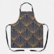 Ce tablier a un design art déco de diamants et de triangles en or sur un champ de bleu.