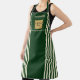 Un élégant tablier vert aux rayures verticales crème, parfait pour ajouter votre logo et votre nom d'entreprise. Le design intemporel met en valeur les ustensiles de cuisine, les couverts, les salons de beauté et de coiffure, les boulangeries, les restaurants, les cafés, les services de restauration et les collections de décoration maison, apportant une identité classique mais fraîche pour un usage professionnel.