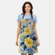 De belles fleurs jaunes et bleues recouvrent cet tablier. Lumineux et gai, à l'allure campagnarde française.
