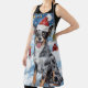 Ce design festif reflète l'esprit joyeux de la période des fêtes, avec un adorable petit portant un chapeau de Père Noël. Le chien est niché dans un pays des merveilles hivernales, avec un bonhomme de neige, un sapin de Noël décoré et des cadeaux joliment emballés. Les flocons de neige tombent doucement, ajoutant une touche magique à la scène, tandis que les couleurs vives des décorations de vacances créent une atmosphère chaleureuse et joyeuse.