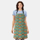 Ce tablier a un design boho de rainbows qui se chevauchent dans des couleurs boho de bleu, vert, jaune et rouge.
