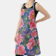Tablier Bouquet floral Aquarelle Peoné rose sur bleu