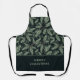 Cet élégant tablier de vacances présente de multiples branches de pin de Noël dans des tons verts variés, sur un arrière - plan noir foncé. Le texte comme indiqué dit "Joyeux Noël", mais vous pouvez changer le texte à tout ce que vous voulez, y compris votre nom de famille ou monogramme.