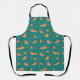 Cet tablier présente des illustrations de capybaras flottant dans l'eau. Ces capybara ludiques sont entrecoupés de petites oranges. L'arrière - plan turquoise vient compléter les tons marron, créant une esthétique fantaisiste et légère.