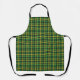 Cet tablier est présenté dans un magnifique imprimé carreaux noir, vert, jaune multicolore.
