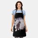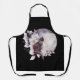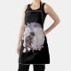 Apron avec une aquarelle peinte d'un chat noir et un bouquet floral violet clair et rose. Devant une grande lune. Design et magique.