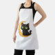 Tablier Chat noir souriant aux yeux verts brillants assis