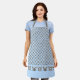 Ce mignon tablier présente un motif de visages graphiques de chats siamois dans une version claire et foncée avec des yeux bleu pâle et une bordure en bas avec une rangée de chats clairs et foncés alternant.