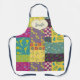 Ce joli tablier est prêt à être personnalisé avec un nom. Ce tablier a un design illustré avec l'apparence d'une courtepointe en patchwork de style boho coloré. Un graphisme de couleur crème en forme de coeur avec des accents de faux couture est prêt à être personnalisé avec un nom en écriture bleu marine ou cursive.