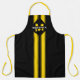 Tablier masculin personnalisé avec un arrière - plan noir élégant, rayures de sport jaune, votre initiale et votre nom. Ce tablier personnalisé ferait un grand cadeau pour la fête des pères ou un anniversaire !